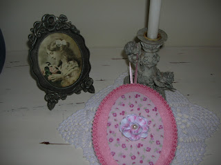 Fiz no formato oval , com flores de organza , pérolas , estilo vintage ...